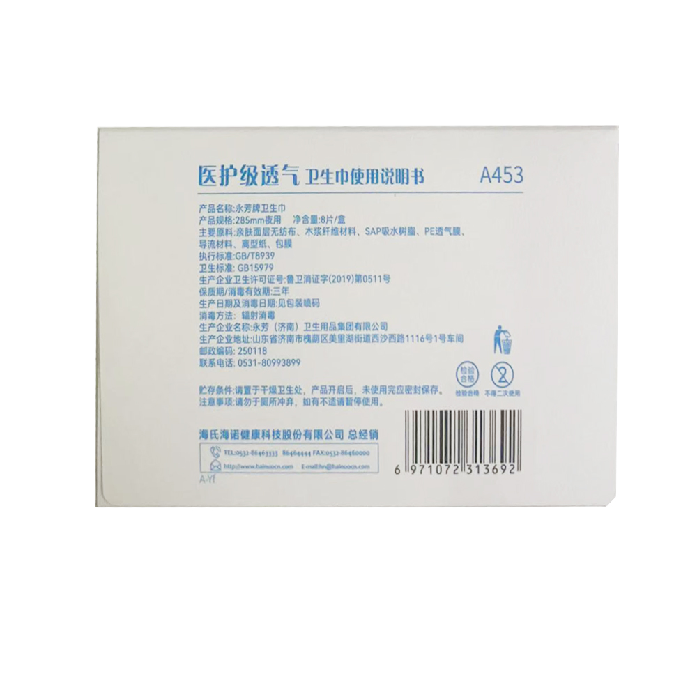 海氏海诺医护级透气卫生巾8片/盒 夜用285mm