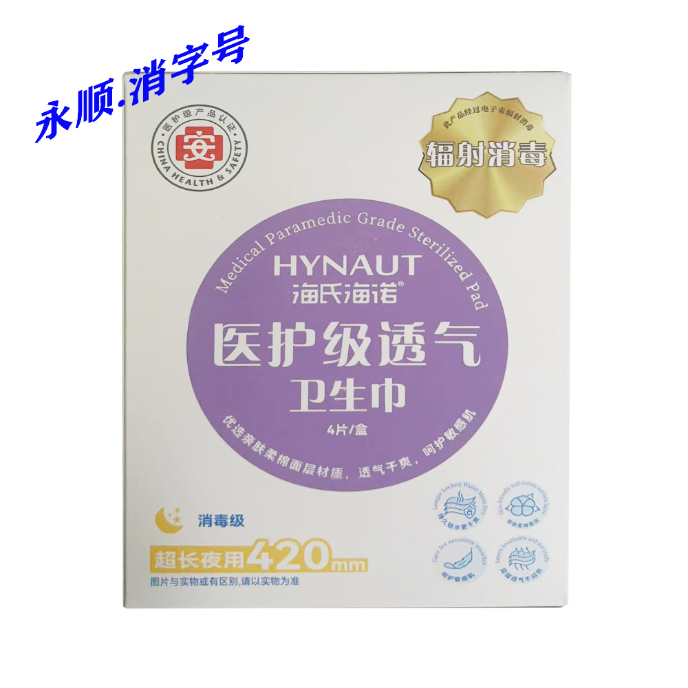 海氏海诺医护级透气卫生巾夜用4片/盒  超长420mm